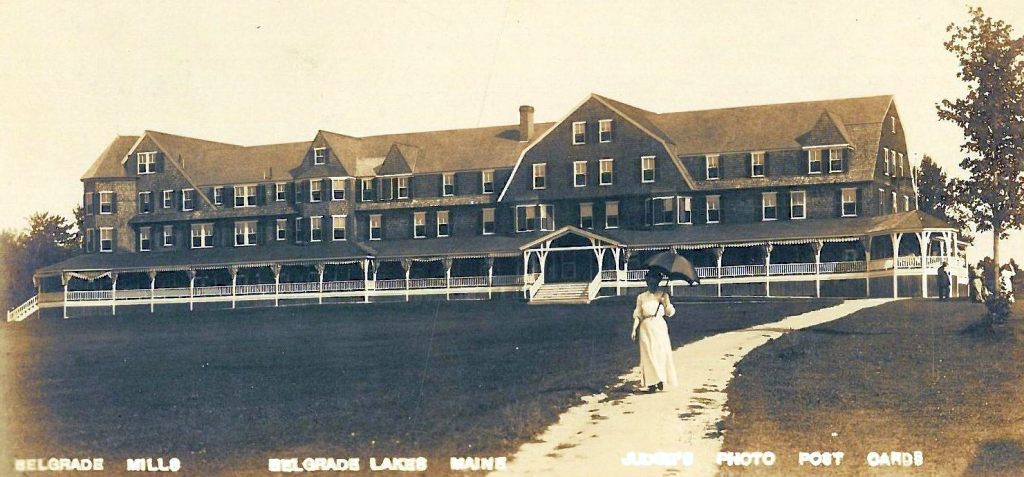 The emergence of an affluent upper-middle class was eager to escape the noise and pollution in American cities by getting back to nature, and many of these “rusticators” found the Belgrade lakes a welcoming summertime destination. Charles Hill, the proprietor of the Belgrade Hotel succeeded in lobbying to change the name of the village to Belgrade Lakes, to appeal to tourists. Fishermen led the charge, but in 1900 the Belgrade Hotel was built to entice visitors to vacation in elegance by the clear water of Long Lake. The hotel complemented the many inns and more rustic lodgings around the lakes.