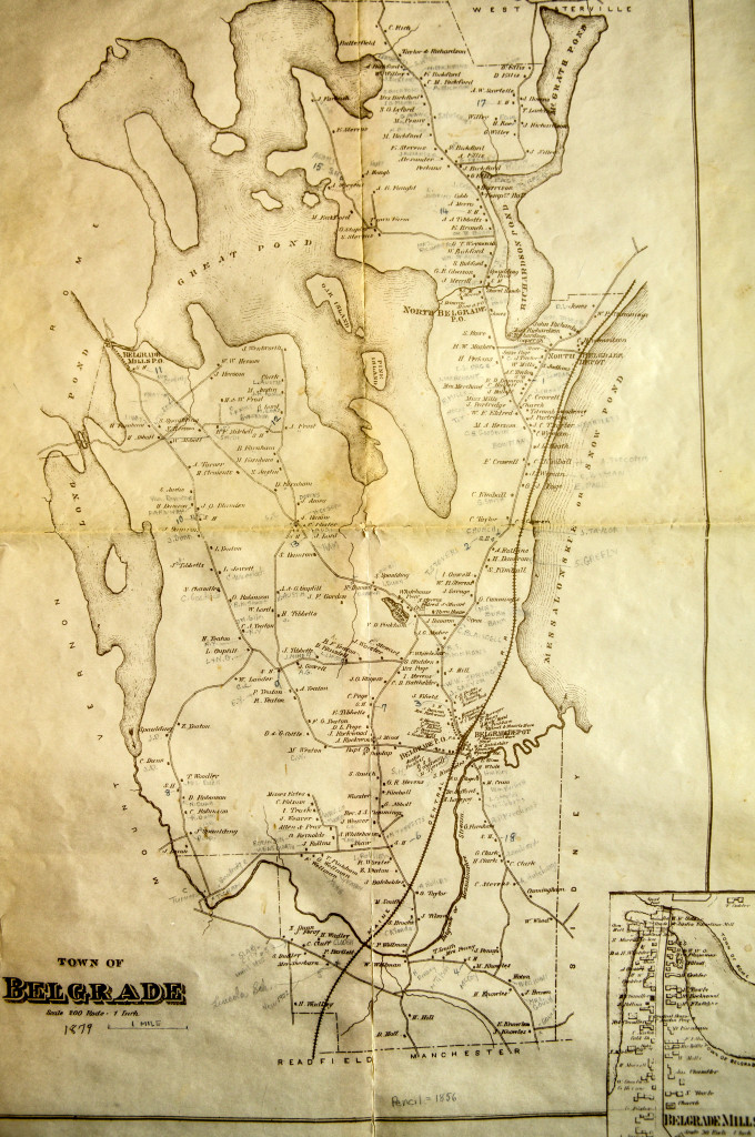 Other early settlers’ names included Bean, Blake, Crosby, Crowell, Fall, Gilman, Hall, Hemmingway, Leighton, Linnell, McGrath, Mosher, Page, Philbrick, Rankins, Richmond, Staples, Taylor, Tilton, Tozier, and Weston. While some of the family names of these early settlers still exist in Belgrade, many no longer exist locally.