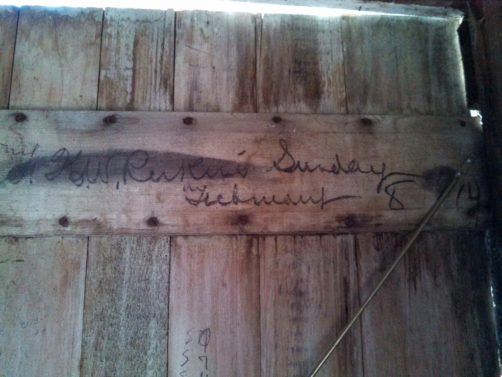 Another barn “autograph” was left by F.K.W. Perkins.
